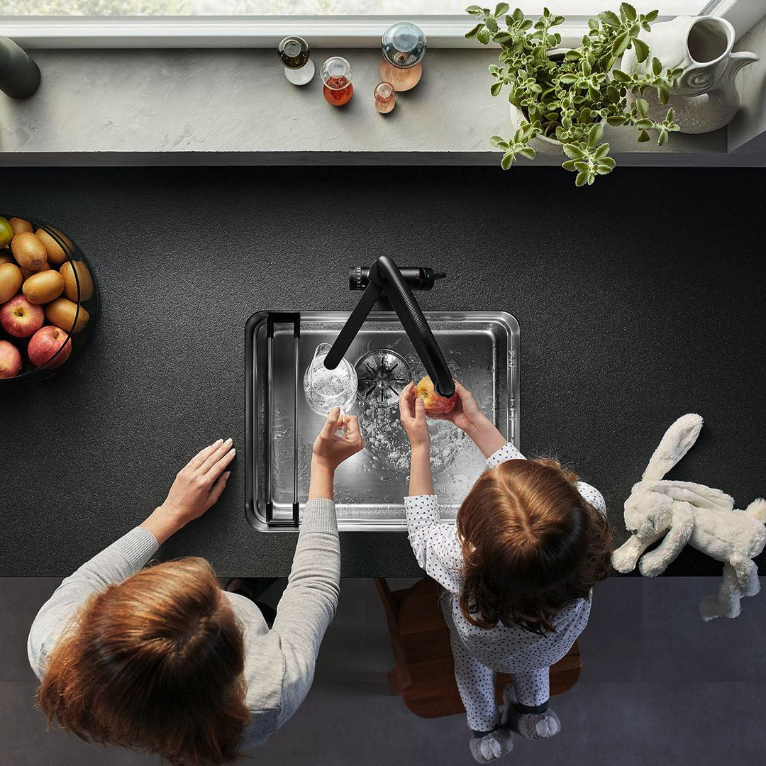 kaltes, warmes und gefiltertes Wasser, BWT Mehrstufenfiler zur Kalkreduzierung und Geschmacksverbesserung, separater Auslauf für gefiltertes Wasser, Zweisstrahlbrause mit präziser Magnethalterung, 9,2 l/min bei 3 bar Druck, System: High-End-Wasserfiltersystem von BWT mit Filterkopf und mehrstufiger Filterkartusche, Steuerbox mit integriertem Display zur Anzeige an verbleibenden Filterkapazität, Stromversorgung 220-240 V AC/50 Hz, 1x Getränkefilter Solf L, 1x Filterkopf und 1x Steuerbox im Lieferumfang enthalten, Versorgung, Armatur: 3-1 semiprofessionelle Armatur, Raumtemperatur kalt und warm, gefilterte Raumtemperatur kalt, Click & Touch (Auswahl vordefinierter Wassersorte und Menge in ml dank Skalierungsgrad und intuitiver Touch-Steuerung, separater 180° schwenkbarer Auslauf für raffiniertes Wasser, 360° schwenkbarer Auslauf für gemischtes Wasser, Hahnloch Ø 35 mm erforderlich, mit Keramik-Scheibenkartusche, patentierter Strahlregler, zweistrahlige Brause für gemischtes Wasser mit Magnethalterung, flexible Anschlussrohre 700 mm lang und 3/8" Mutter, Stabilisierungsplatte