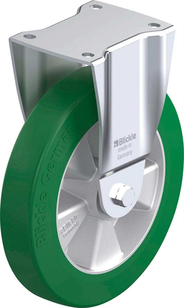 • Lauffläche: Polyurethan-Elastomer Blickle Softhane® 75 Shore A, Farbe grün, spurlos und kontaktverfärbungsfrei