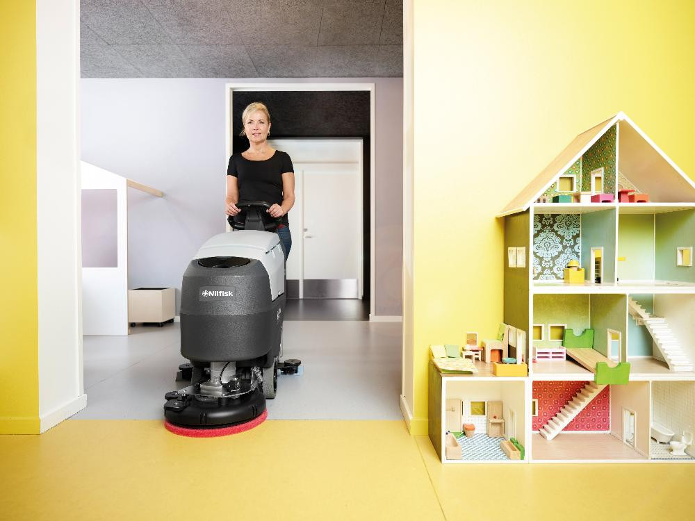 Diese netzabhängige Scheuersaugmaschine bietet sehr gute Reinigungs- und Trocknungsergebnisse: Durch die gebogene Saugleiste wird der Boden vollständig getrocknet. Aktivieren aller Funktionen ist mit nur einem Tastendruck möglich – durch das OneTouch System.