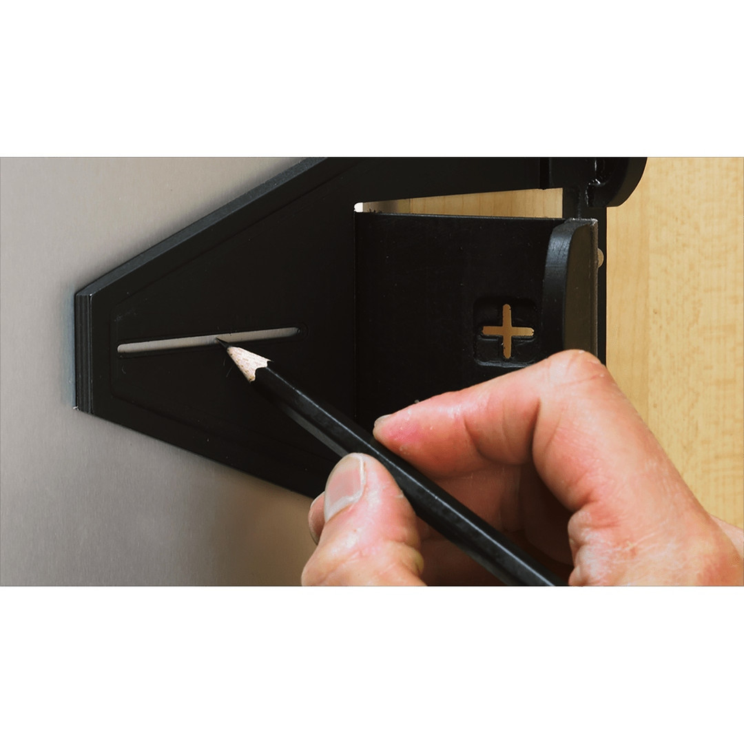 • Erleichtert die Positionierung von Scharniertopfbohrungen, auch beim nachträglichen Einbau von Türen