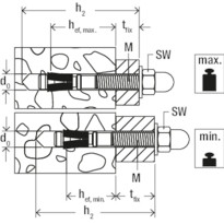 | Verankerungstiefe hef,max/hef,min | 70 / 50 mm |