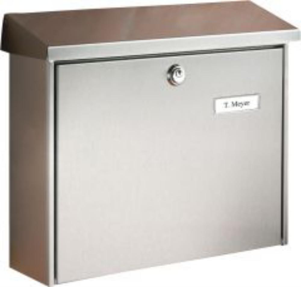 • Geräumiger Edelstahl-Briefkasten mit aufklappbarem Regendach