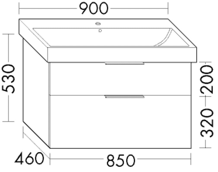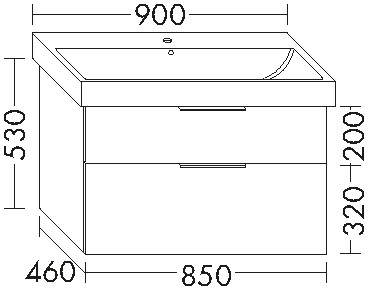 Schublade oben, mit Siphonausschnitt, Auszug unten