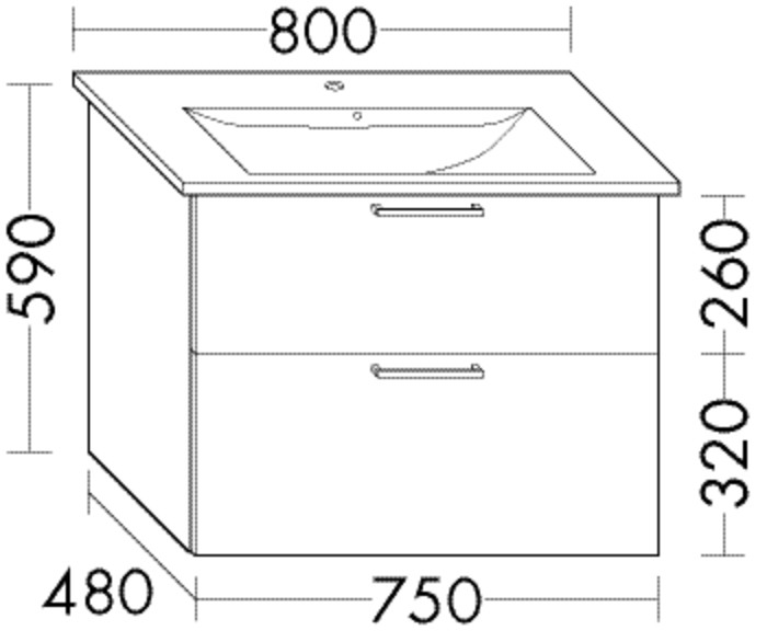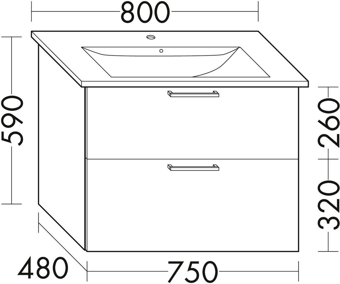 Schublade oben, mit Siphonausschnitt, Tiefe 300 mm, Auszug unten, Tiefe 350 mm
