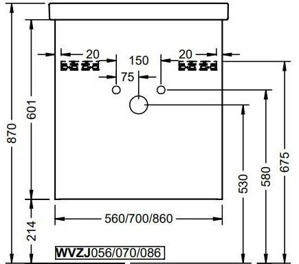 Schubladen oben, mit Siphonausschnitt, Tiefe 300 mm, Auszüge unten, Tiefe 350 mm