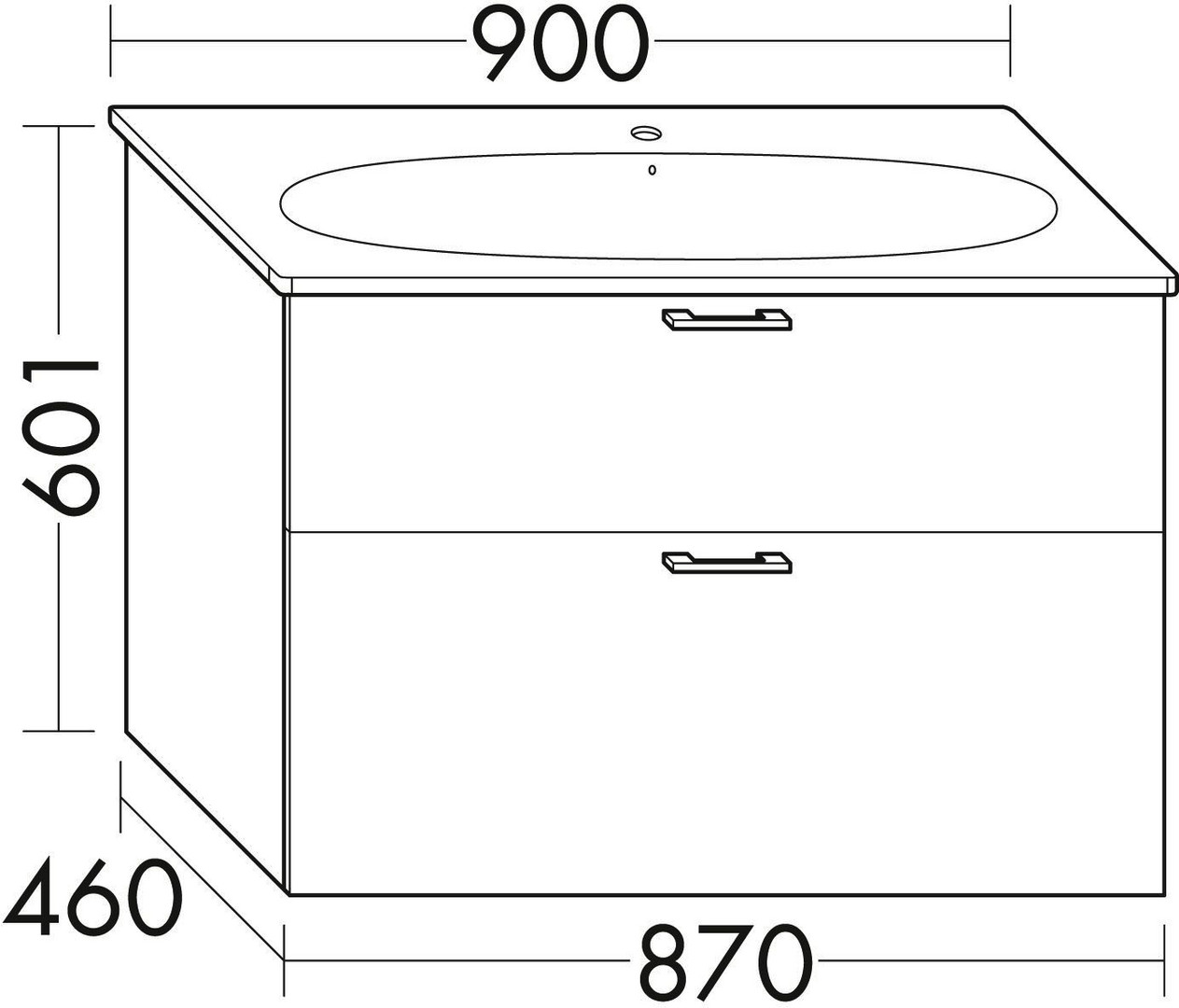 Schubladen oben, mit Siphonausschnitt, Tiefe 300 mm, Auszüge unten, Tiefe 350 mm