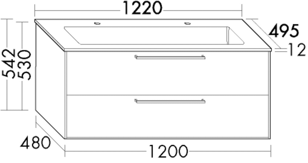 Burgbad Osera Waschtisch-Unterschrank-Set 122x49,5x54,2cm, 1 Schublade, 1 Auszug, mit Waschtisch, weiß matt L2