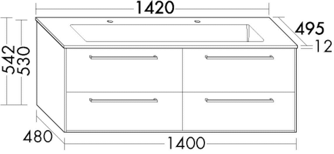 Burgbad Osera Waschtisch-Unterschrank-Set 142x49,5x54,2cm, 2 Schubladen, 2 Auszüge, mit Waschtisch, weiß hochglanz