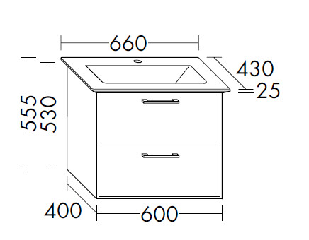Mineralguss-Waschtisch: Muldentiefe: 120 mm, Beckenmaß 490 x 285 mm, Waschtischunterschrank: 1 Schublade oben mit Siphonausschnitt, 1 Auszug unten mit Raumsparsiphon