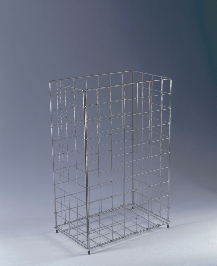Edelstahlgeflecht, stoß- und kratzfest mit großer Korböffnung, zusammenklappbar, 4x schwarze Kunststofffüße, Wandanbringung möglich