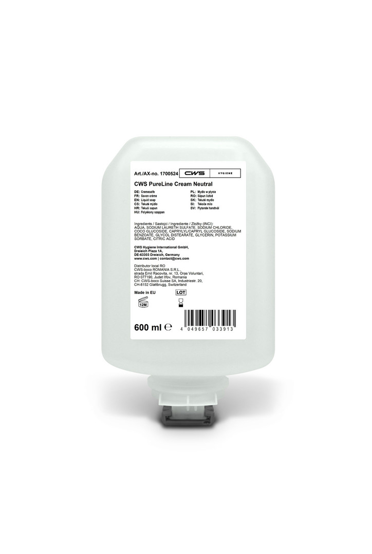 CWS Seifencreme PureLine Cream Neutral, 600ml, 8 Flaschen