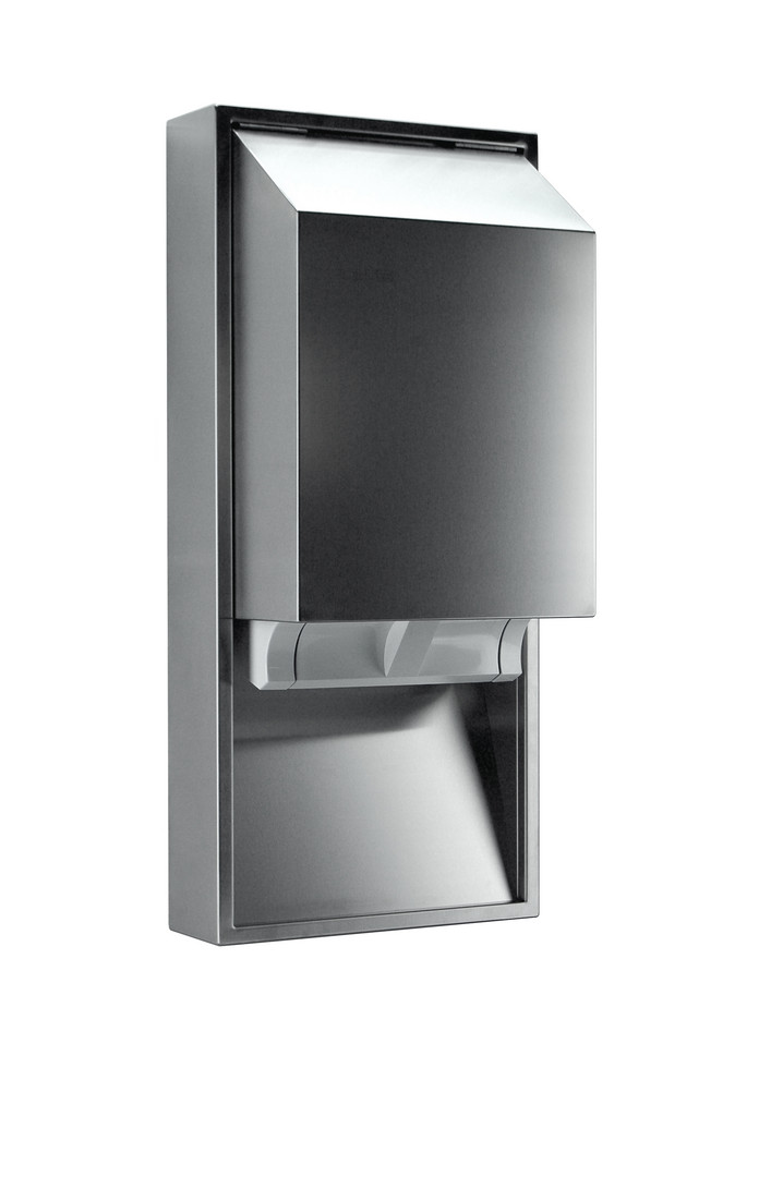 Spender für 21 cm breite Stoffhandtuchrollen, aus Edelstahl, feinmatt gebürstet, abschließbar, Typ 733 AP und 733 UP: (H x B x T) 900 x 410 x 272 mm, automatischer Einzug des benutzten Einmalhandtuchs und Rollendes, Zeitintervall einstellbar (8, 12, 16, 20 s), Typ 737 AP und 737 UP: (H x B x T) 900 x 410 x 272, sensorgesteuerter Handtuchausgabe (für normale und hohe Benutzerfrequenz programmierbar) mit Einzug des benutzten Einmalhandtuchs und Rollendes