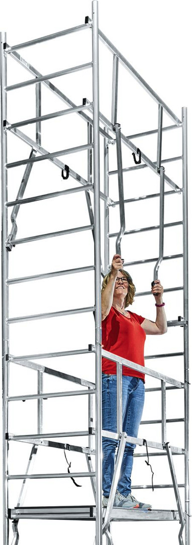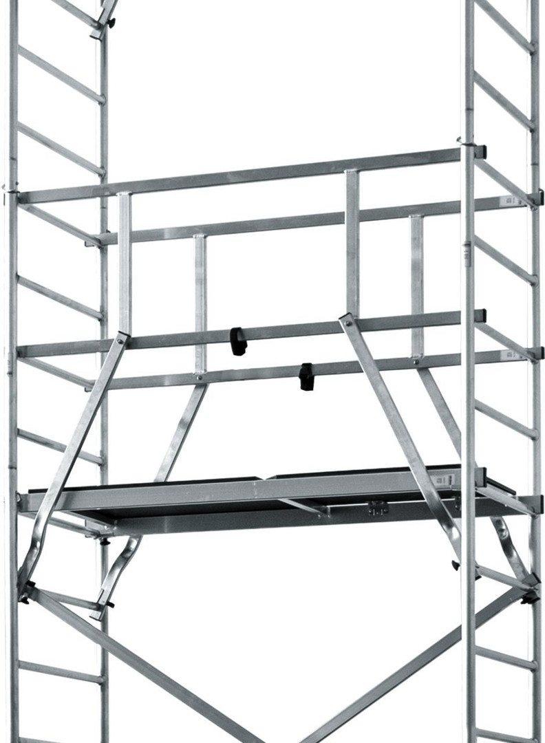 + Einfacher und sicherer Gerüstaufbau durch die Befestigung vor dem