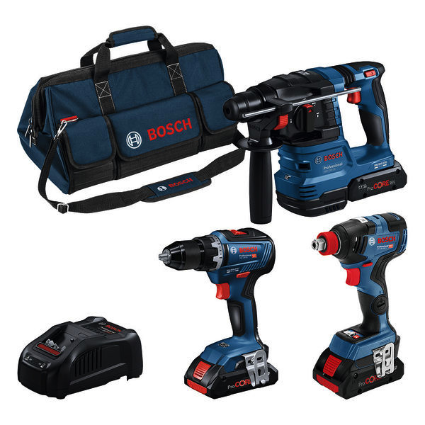 Combo Kit 3-tlg. kit 18V: GSR 18V-55 + GDX 18V-200 + GBH 18V-22 + 3 x 4.0Ah (PC) + GAL 1880CV (C). Die perfekte Kombination von gewerblichen Elektrowerkzeugen mit Schutzfunktionen und beeindruckender Leistung, um Arbeit effizient zu erledigen. 3 x Akku ProCORE18V 4.0Ah (1 600 A01 6GB). Schnellladegerät GAL 1880 CV (1 600 A00 B8G). Bosch Professional Werkzeugtasche, Medium (1 600 A00 3BJ)