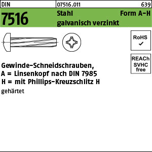 DIN 7516 Stahl Form A-H galvanisch verzinkt Linsen-Schneidschrauben mit Kopf nach DIN 7985, KS -H - Abmessung: AM 8 x 25 -H VE=S (500 Stück)