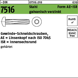 ~DIN 7516 Stahl Form AE-ISR galvanisch verzinkt Gewinde-Schneidschrauben mit Linsenkopf nach ISO 7045, ISR - Abmessung: AE M 5 x 10 -T25 VE=S (1000 Stück)