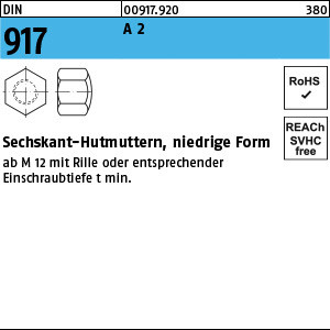 DIN 917 A 2 Sechskant-Hutmuttern, niedrige Form - Abmessung: M 10 SW 17 VE=S (250 Stück)