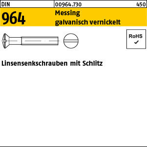 DIN 964 Messing galvanisch vernickelt Linsensenkschrauben mit Schlitz - Abmessung: M 6 x 45 VE=K (200 Stück)