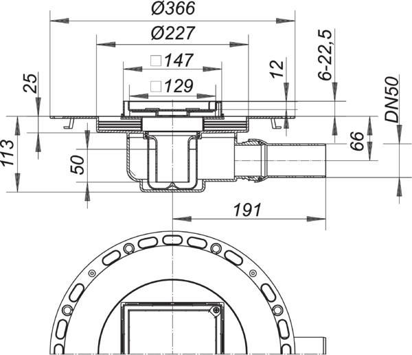 Dallmer Bodenablauf TristoStone VN 15, 150 x 150 mm, DN 50