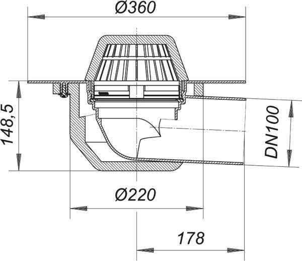 | Produktklasse | Dachabflusstrichter Seitenauslass |