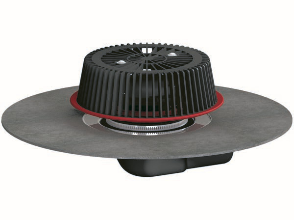 nach DIN EN 1253, flacher Notablauf zum Einbau in Wärmedämmungen min. 120 mm, Laubfangkorb verschraubt, Anstauelement höhenverstellbar 28-58 mm, Polypropylen, UV-stabilisiert, 86 D DallBit mit Gehäuse mit werkseitig aufgeschweißter Bitumenschweißbahn-Manschette, Ø 500 mm, 5 mm stark, Edelstahlflansch zur zusätzlichen Sicherheit, 86 D PVC komplett aus PVC, mit extra breitem Flansch zum Anschluss von PVC-Dachbahnen, 86 D FPO-PP mit extra breitem Flansch zum Anschluss von FPO-Dachbahnen auf Werkstoffbasis Polypropylen, 86 D FPO-PE mit extra breitem Flansch zum Anschluss von FPO-Dachbahnen auf Werkstoffbasis Polyethylen