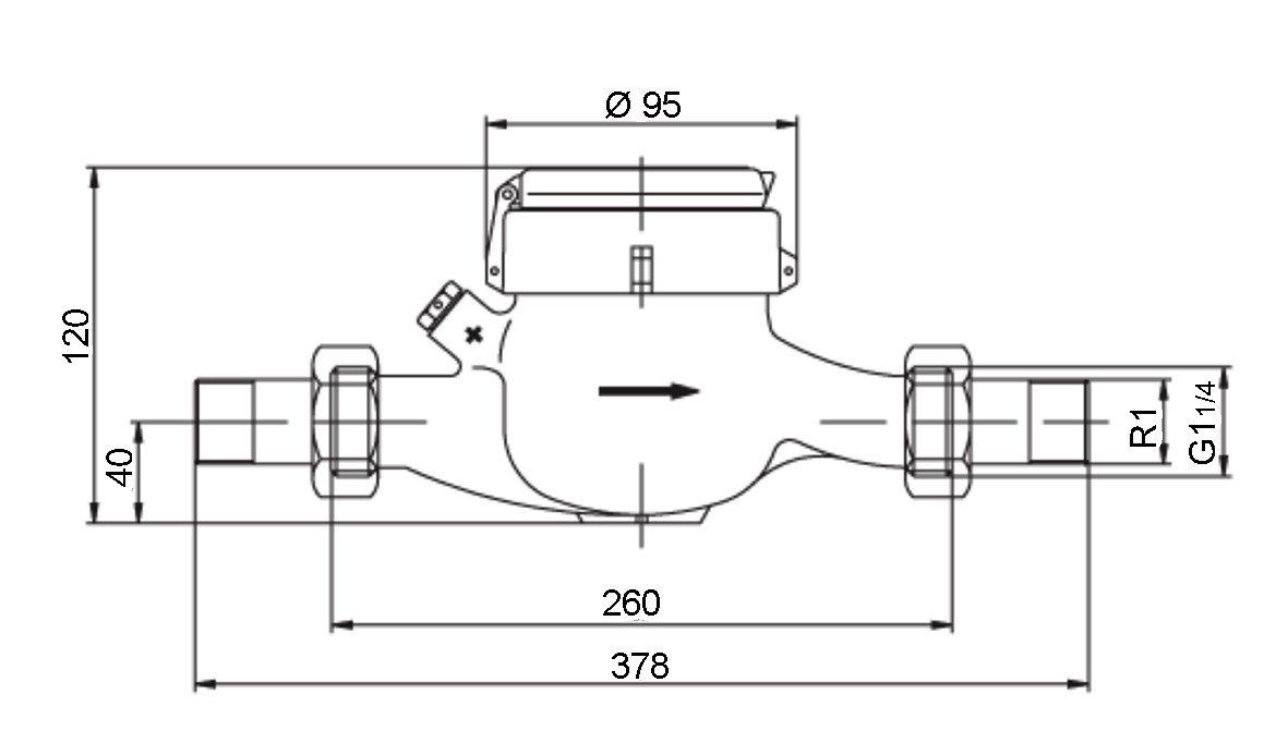 Deltamess Mehrstrahl-Flügelradzähler MTW Horizontal, DN 25, Q3 10 cbm/h, warm, Standard