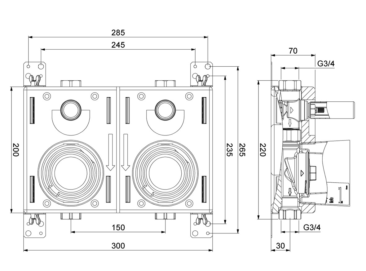 mit Einputzhaube, Spindelventil, Ventiloberteile erforderlich, mit Koax G2-Gehäuse
