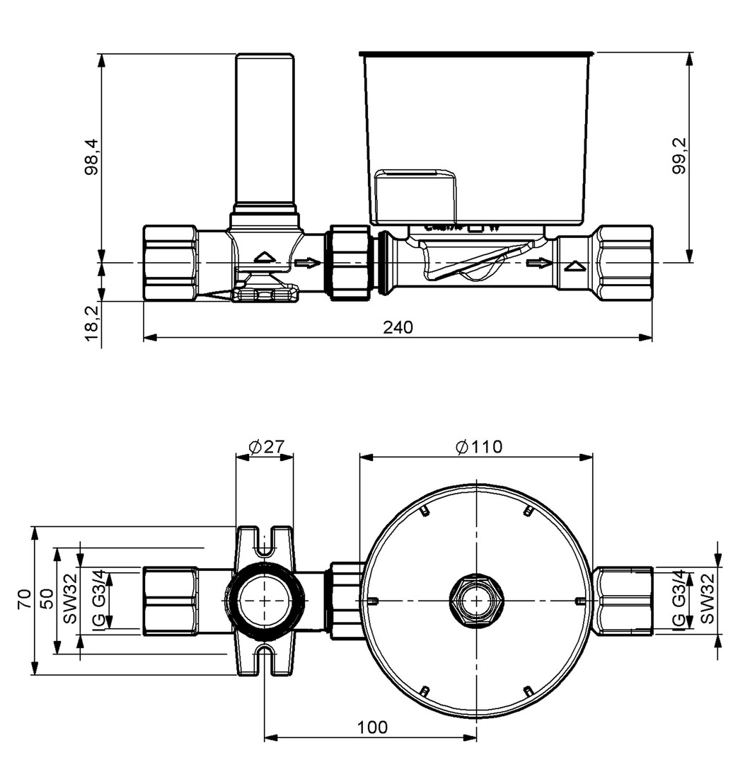 Deltamess Montagestrang KOAX 2 3/4" IG, mit Spindelventil, Objektstrang 1, Unterputz, Messing