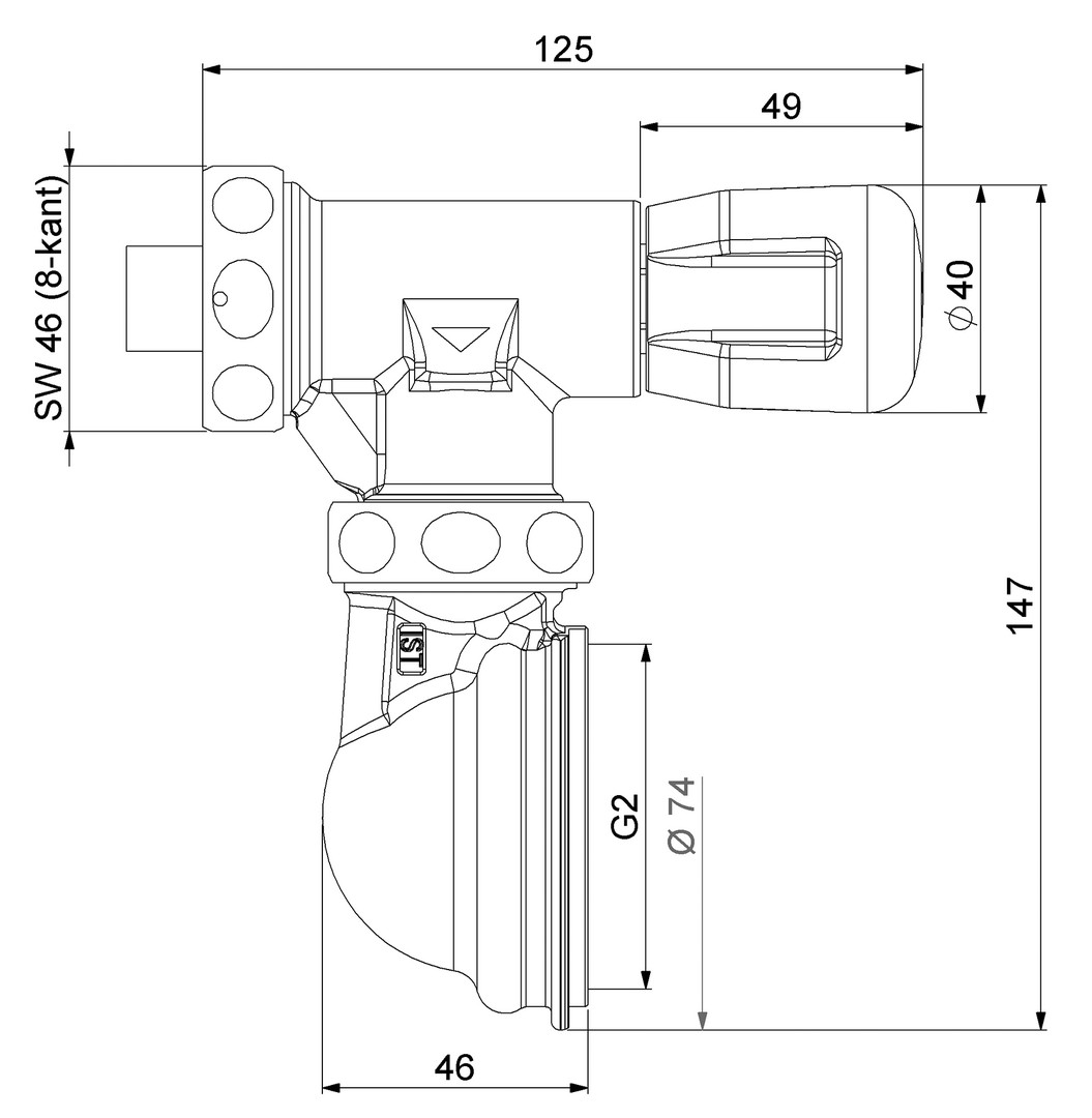 Deltamess Zähler-Eckgehäuse Koax, 2", mit Keramikscheibenabsperrventil