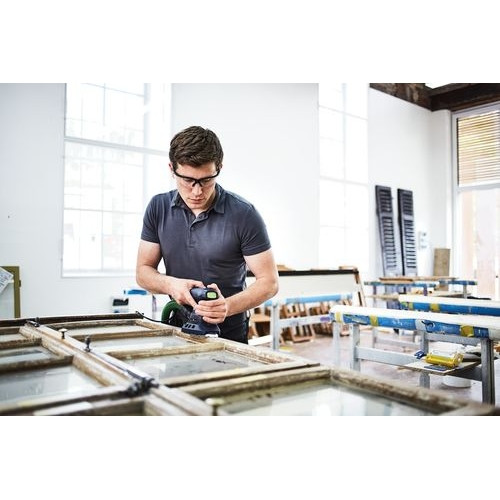 Gesund und weniger Nacharbeit: In Kombination mit Absaugmobil oder Longlife-Staubfangbeutel und aufsteckbarem PROTECTOR für schonendes Schleifen entlang von Fensterflächen, Rahmen und Füllungen