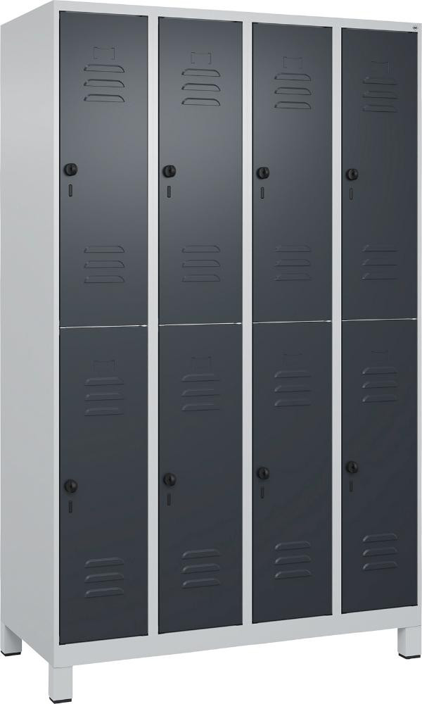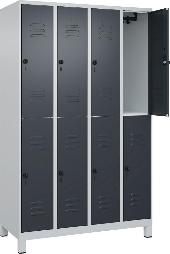 Doppelst. Schrank CLASSIC B1200xT500xH1950 mm RAL 7035/7016, 4x2Abteile mit 100 mm hohen Füßen