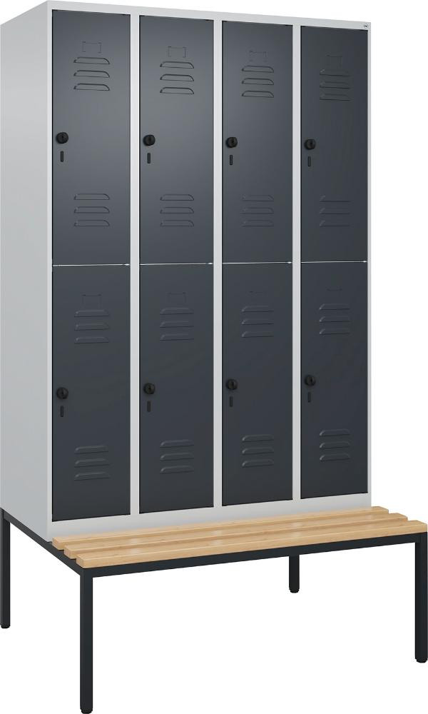 Doppelst. Schrank CLASSIC B1200xT500xH2120 mm RAL 7035/7016, 4x2Abteile mit untergeb. Sitzbank