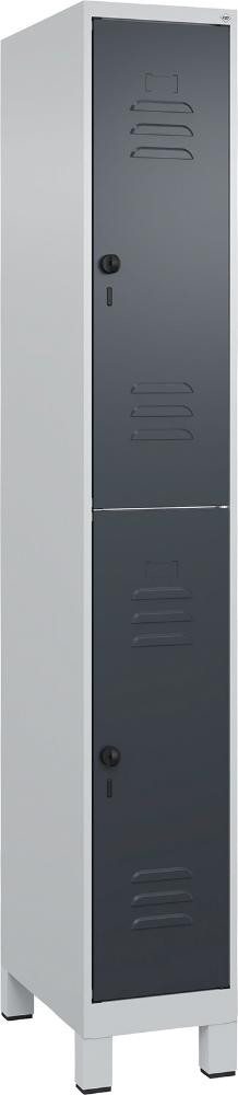 Doppelst. Schrank CLASSIC B300xT500xH1950 mm RAL 7035/7016, 1x2Abteile mit 100 mm hohen Füßen