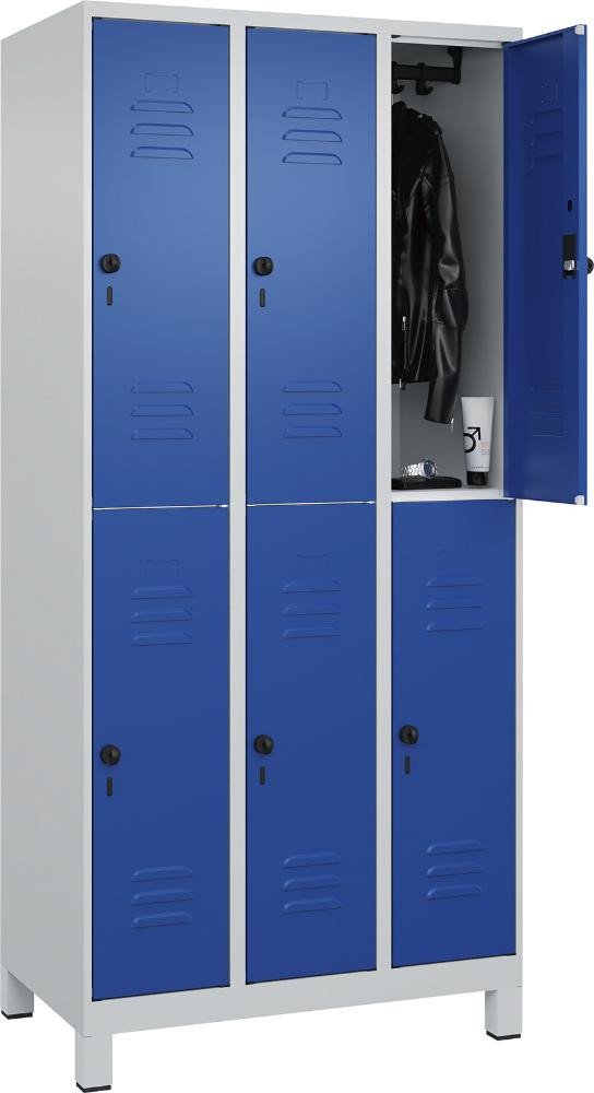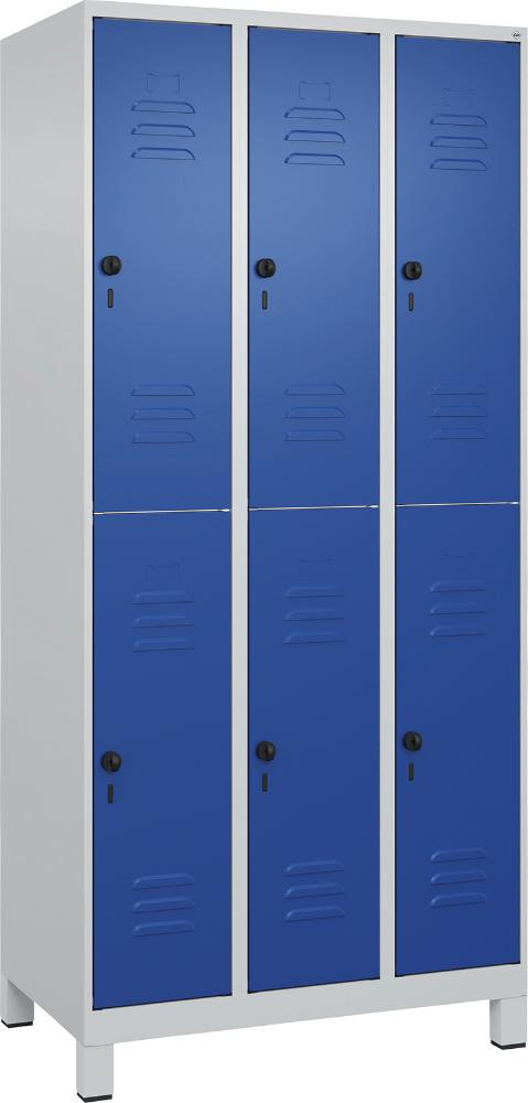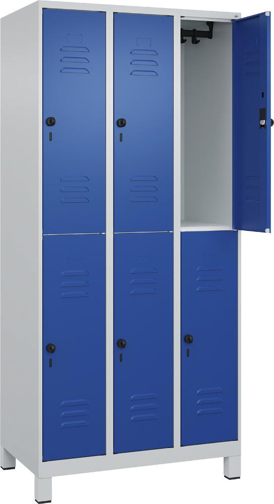 Doppelst. Schrank CLASSIC B900xT500xH1950 mm RAL 7035/5010, 3x2Abteile mit 100 mm hohen Füßen