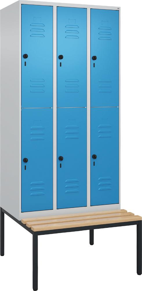 Doppelst. Schrank CLASSIC B900xT500xH2120 mm RAL 7035/5012, 3x2Abteile mit untergeb. Sitzbank