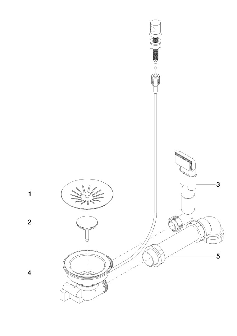 3 1/2" Exenterventil, Zugknopf mit Bowdenzug, verdeckte Überlauf, Siebeinsatz