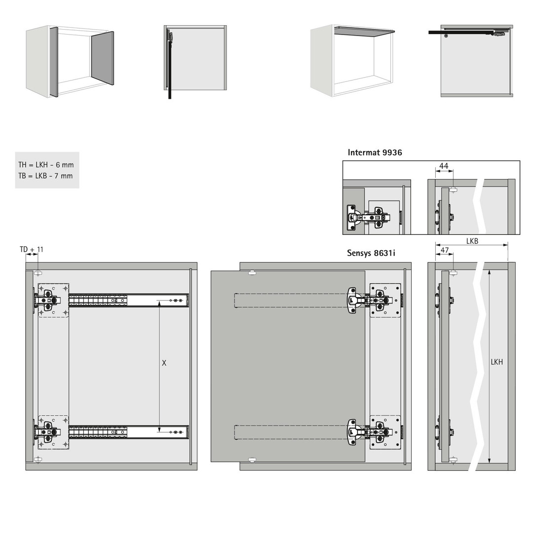 • Garnitur (GN) enthält 2 Kugelauszüge, bitte Anzahl Kugelauszüge pro Tür in Abhängigkeit der Türhöhe wählen