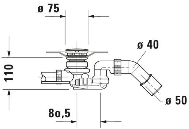 Variante: Duravit Ab- und Überlaufgarnitur Quadroval, Ø 5,2 cm, mit Bodenzulauf, chrom