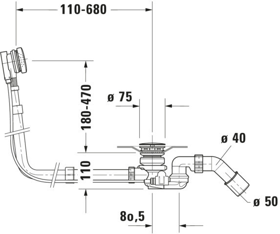 Duravit Ab- und Überlaufgarnitur Quadroval d= 5,2cm, mit Bodenzulauf, lange Ausführung, chrom