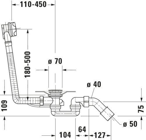 Bowdenzuglänge 70 cm, für zentralen Ablauf, passen zu Badewannen D-Neo, Duravit No. 1