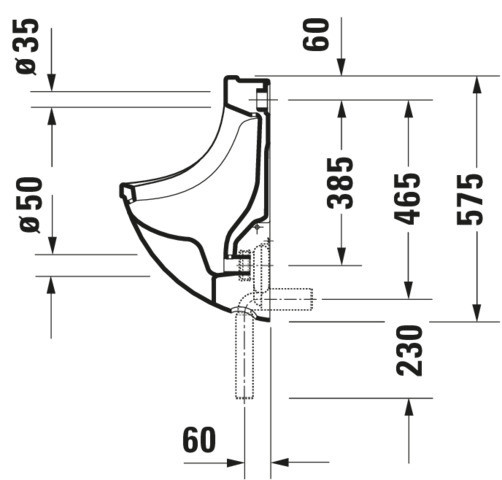 Duravit Absaug-Urinal Starck 3 33x35cm, Zulauf von hinten, Zulauf von hinten, weiß Hygiene Glaze