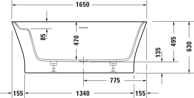 nahtlose Verkleidung, unterschiedliche Rückenschrägen, Material Mineralguss, Materialart DuraSolid A, Nutzinhalt 140 l, mit Fußgestell, Ab- und Überlaufgarnitur