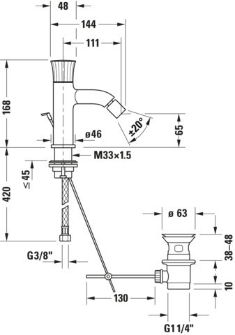 Duravit Bidet-Einhebelmischer White Tulip mit Zugstangen-Ablaufgarnitur, Ausladung 111mm, chrom