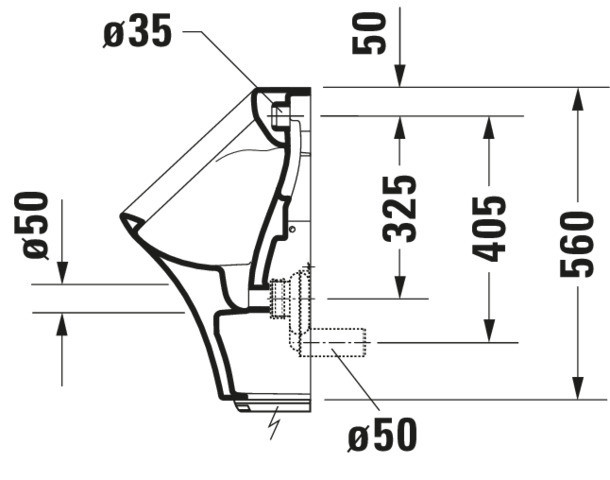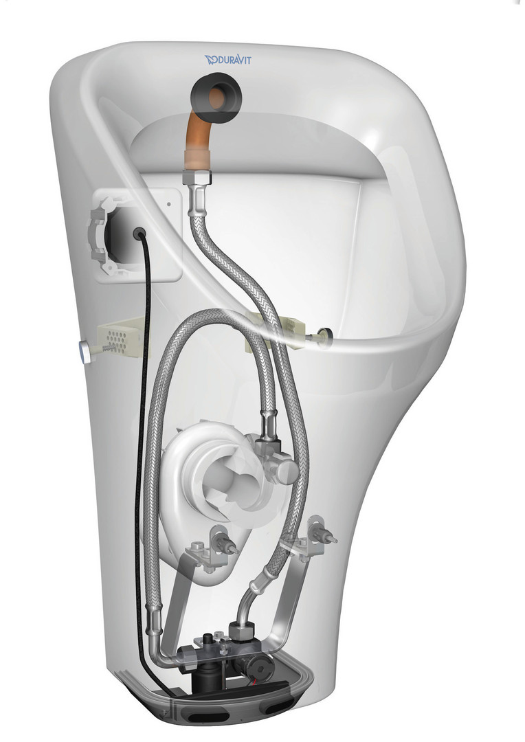 Anschlussmaß Wasseranschluss 1/2", Abgang waagerecht, verdeckter Abgang, Spülform Absauger, min. Spülwassermenge 1 l, mit elektronischer Steuerung, Befestigungsmaterial