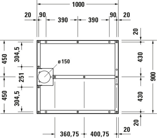 Duravit Fußgestell 100 x 90 cm, höhenverstellbar von 8-10cm