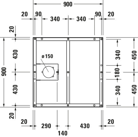 Duravit Fußgestell 90 x 90 cm, höhenverstellbar von 7-10 cm