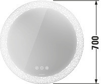 Version Icon, Lichtfeld kreisförmig, umlaufend, indirekte Beleuchtung, umlaufend, IP44, LED (Lebensdauer > 30.000 Stunden), LED fest verbaut, LED 2700-6500 Kelvin Lichtfarbe, Ein/Aus Funktion auch über bauseitigen Taster möglich, Berührungsloses Bedienfeld auf der Frontseite mit 3 horizontal angeordneten Icons, Icon 1 rechts, An/Aus mit Dimmfunktion für Lichtfeld, Icon 2 Mitte, An/Aus mit Dimmfunktion für indirektes Licht, Icon 3 links, An/Aus Spiegelheizung mit Auto-Off noch 60 Minuten, Icon 1 und Icon 2 zusammen betätigen und halten, stufenloser Wechsel der Lichtfarbe zwischen 2700-6500 Kelvin