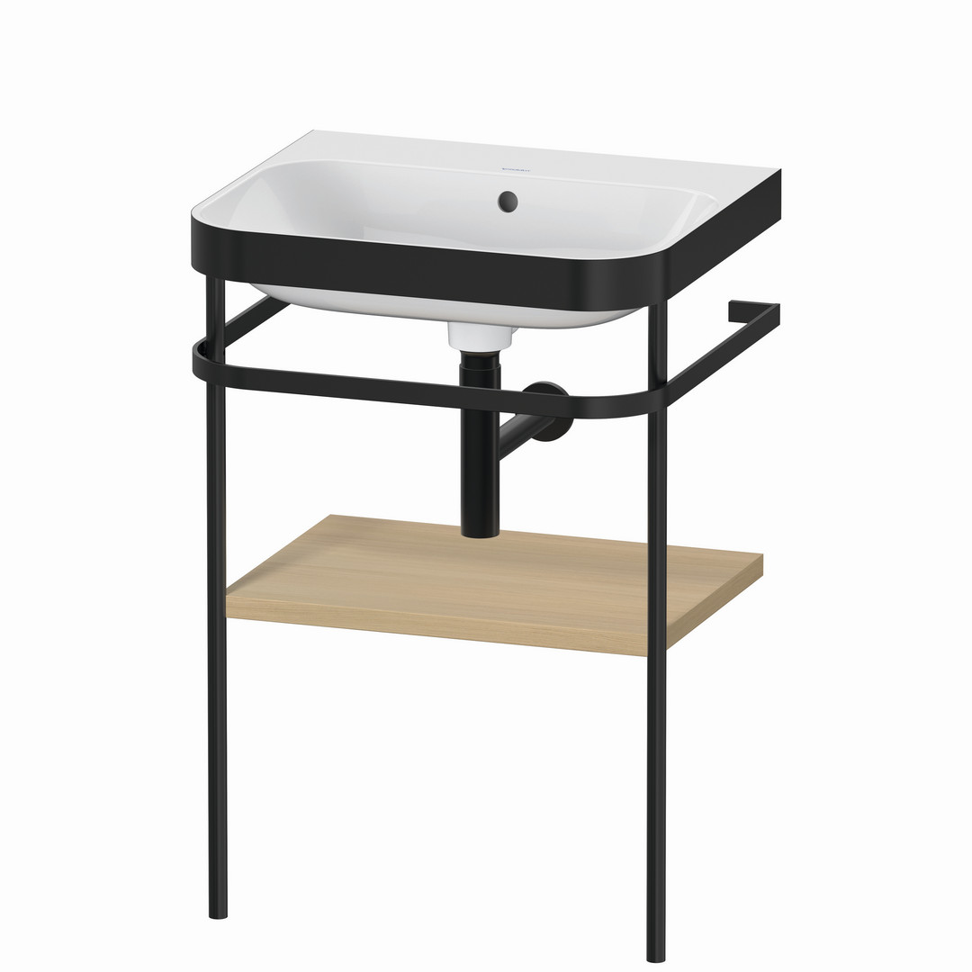Duravit Möbelwaschtisch-Kombination Happy D.2 Plus 57,5 x 49 cm, ohne Hahnloch, mediterrane Eiche, mit Metallkonsole
