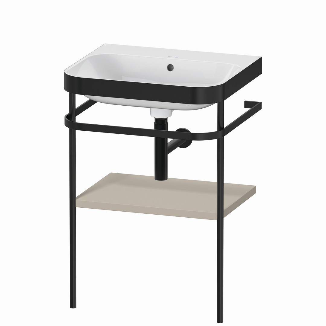 Duravit Möbelwaschtisch-Kombination Happy D.2 Plus 57,5 x 49 cm, ohne Hahnloch, taupe seidenmatt, mit Metallkonsole