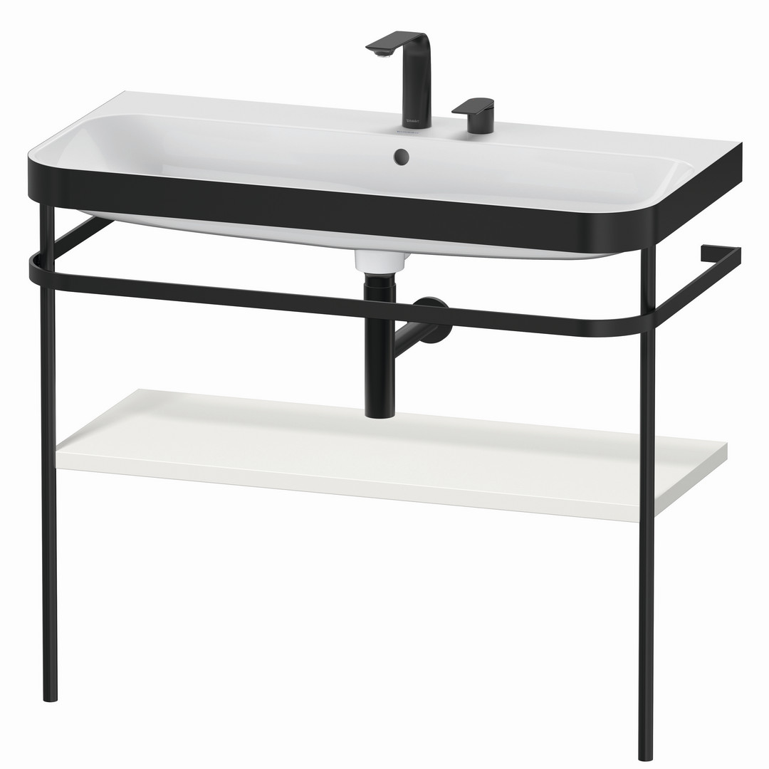 Duravit Möbelwaschtisch-Kombination Happy D.2 Plus 97,5 x 49 cm, 2 Hahnlöcher, nordic weiß seidenmatt, mit Metallkonsole